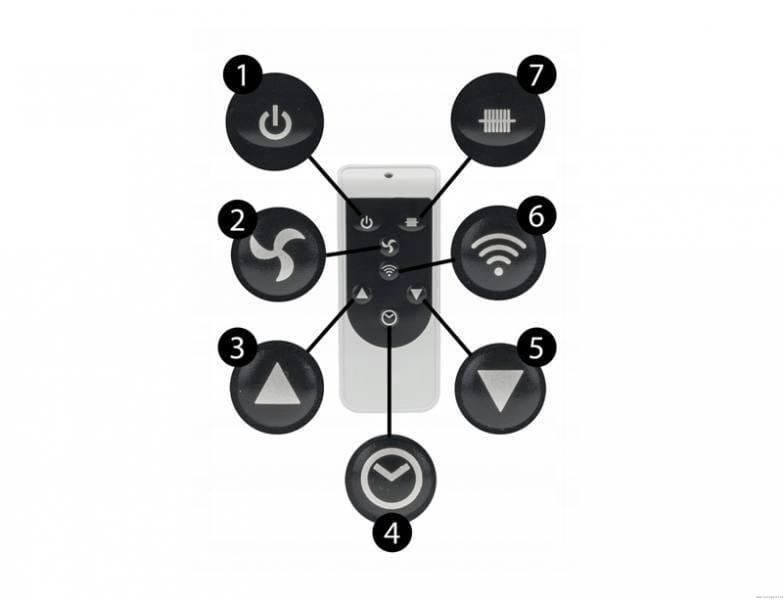 Sterowanie grzejnikiem jest niezwykle proste dzięki załączonemu bezprzewodowemu pilotowi, który umożliwia wygodne dostosowanie ustawień z dowolnego miejsca w pomieszczeniu.
