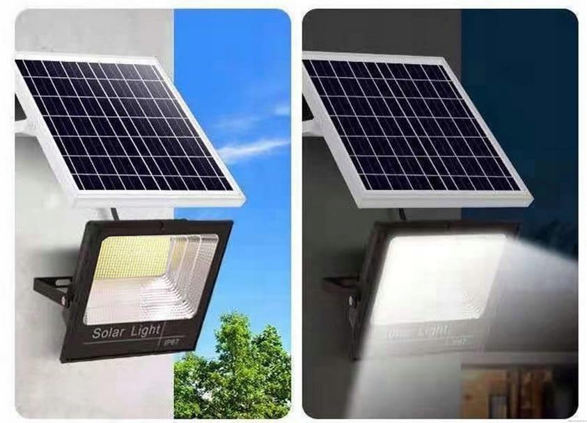 Lampa solarna wyposażona jest 160-LED 5730 SMD Które zużywają mniej energii i dają dużo światła w barwie zimnej 5000 kelvinów . Oprawa wykonana jest z aluminium .Posiada ochronę IP67 dzięki czemu urządzenie z powodzeniem może być wystawione na różnego rodzaju warunki atmosferyczne bez obawy o uszkodzenie