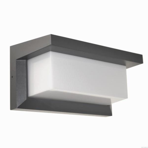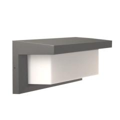 Kinkiet zewnętrzny NEELY, antracytowy, IP44. Aluminiowa obudowa malowana proszkowo, mleczny klosz z poliwęglanu. Źródło światła E27 (max 50W). Wymiary: 265×125×130 mm.