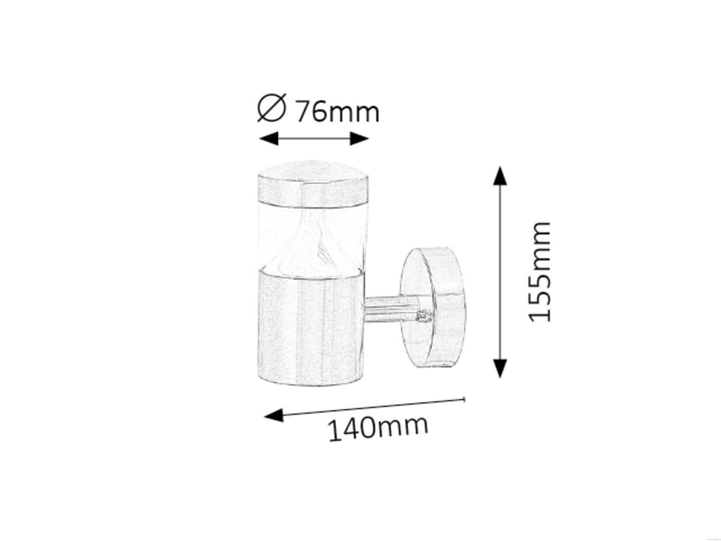 •wysokość 15,5 cm •odległość od ściany 14 cm •średnica górnego klosza Φ7,6 cm |