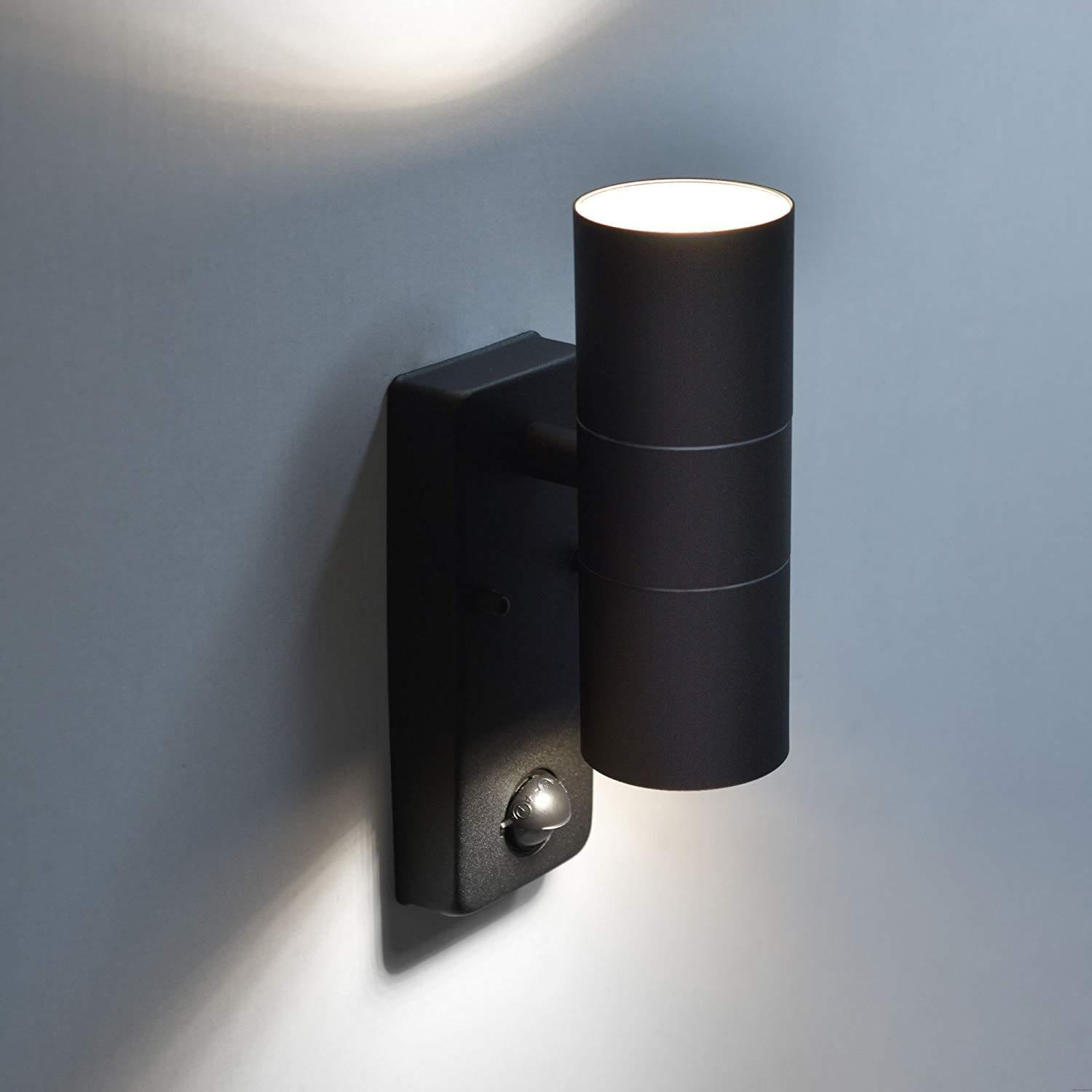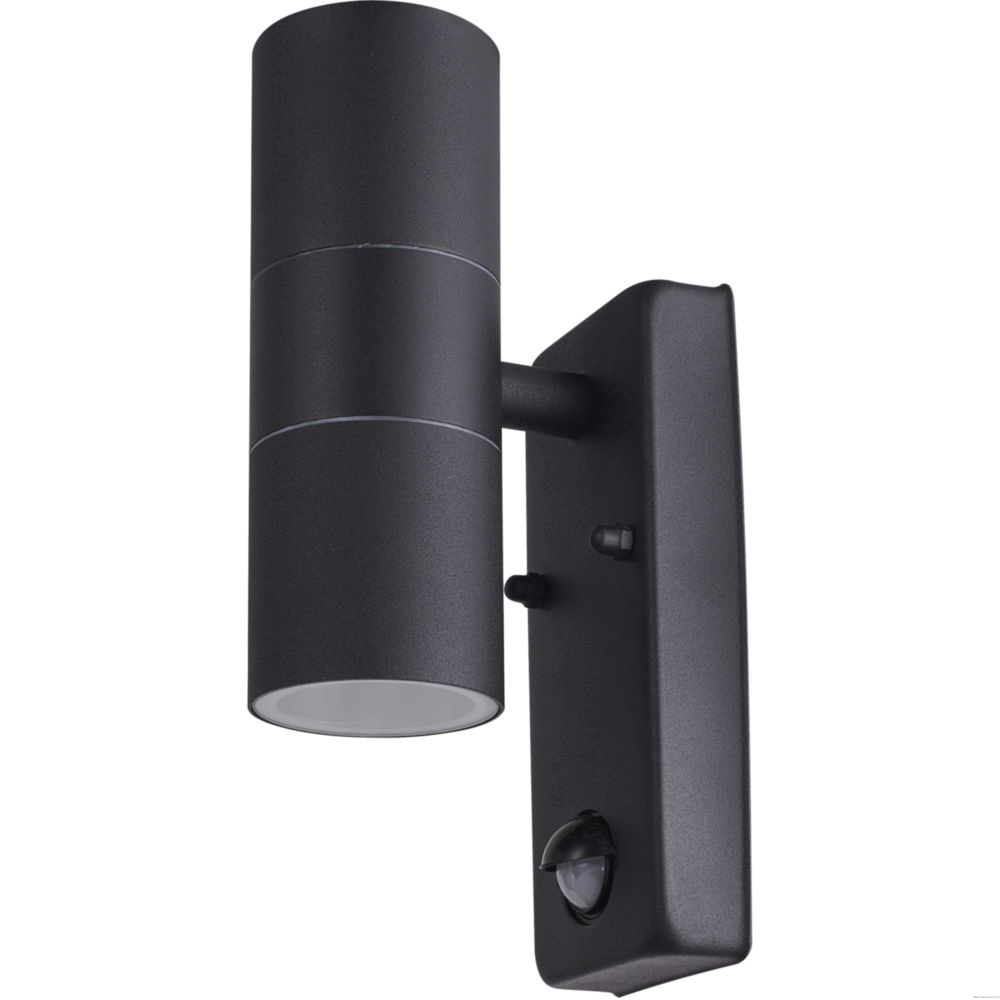 Kinkiet zewnętrzny CORDOBA CZARNA z czujnikiem ruchu i zmierzchu, góra i dół na 2 żarówki z gwintem GU-10.