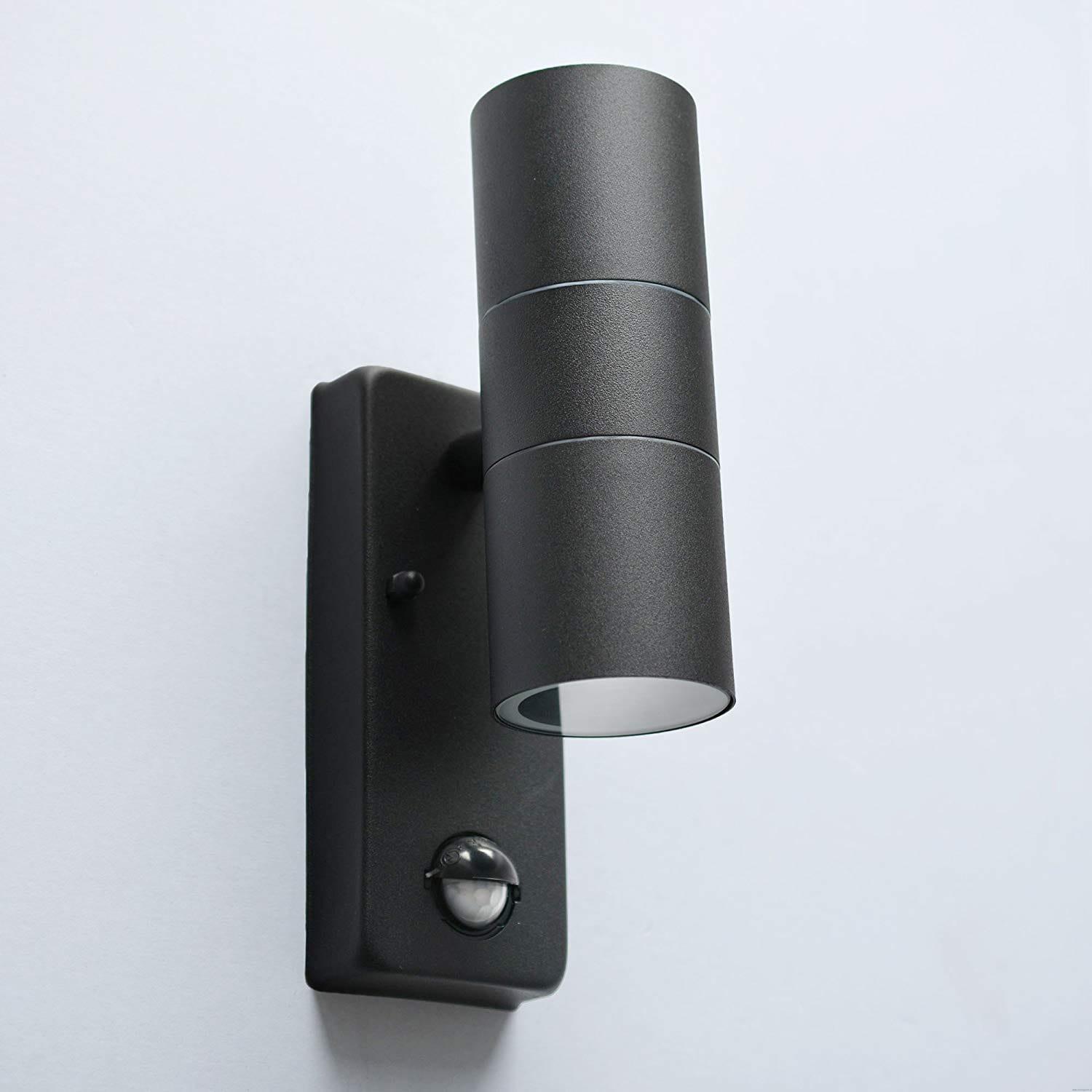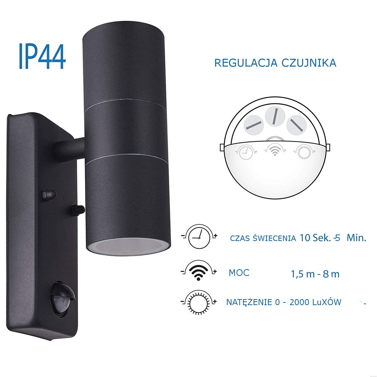 Kinkiet zewnętrzny CORDOBA CZARNA z czujnikiem ruchu i zmierzchu, góra i dół na dwie żarówki z gwintem GU-10.