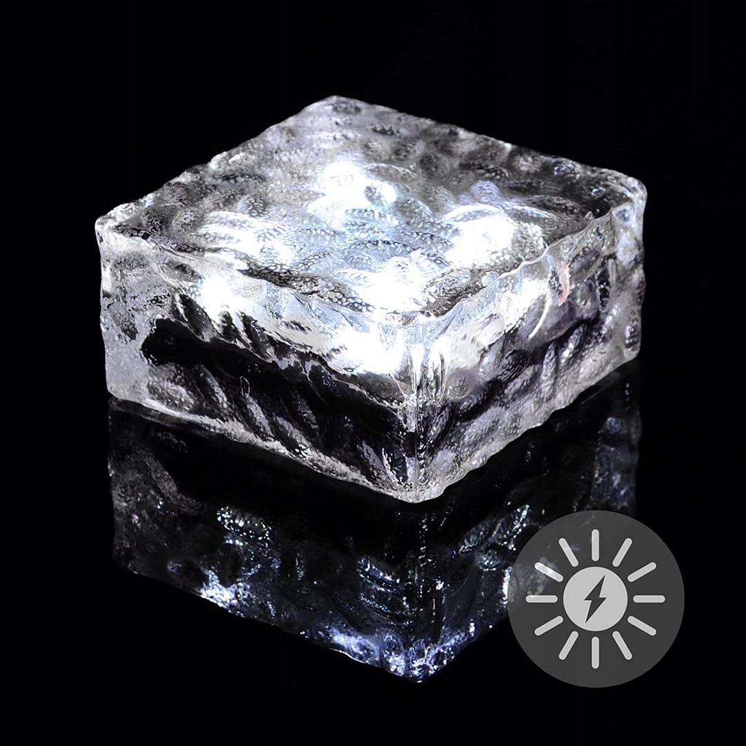 LAMPA SOLARNA 4LED NIEBIESKA KOSTKA BRUKOWA 10CM x 10CM SZKLANY KAMIEŃ IP44
