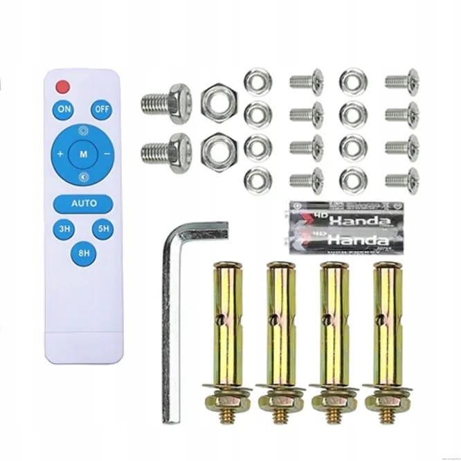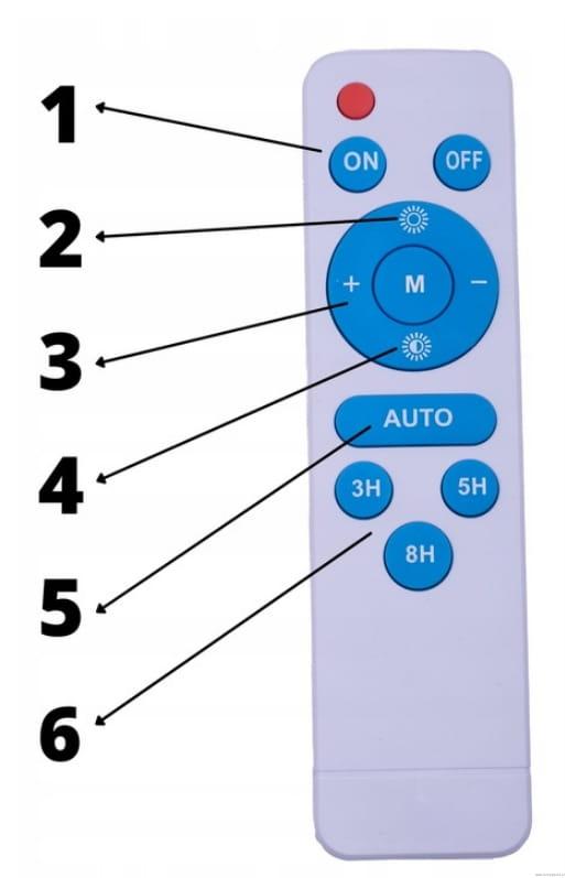 Dodatkowym atutem lampy jest sterowanie pilotem dołączonym do zestawu(sterujemy nim czas świecenia, czy jej ciągłość). Zakres obsługi pilota do 8-10 metrów.