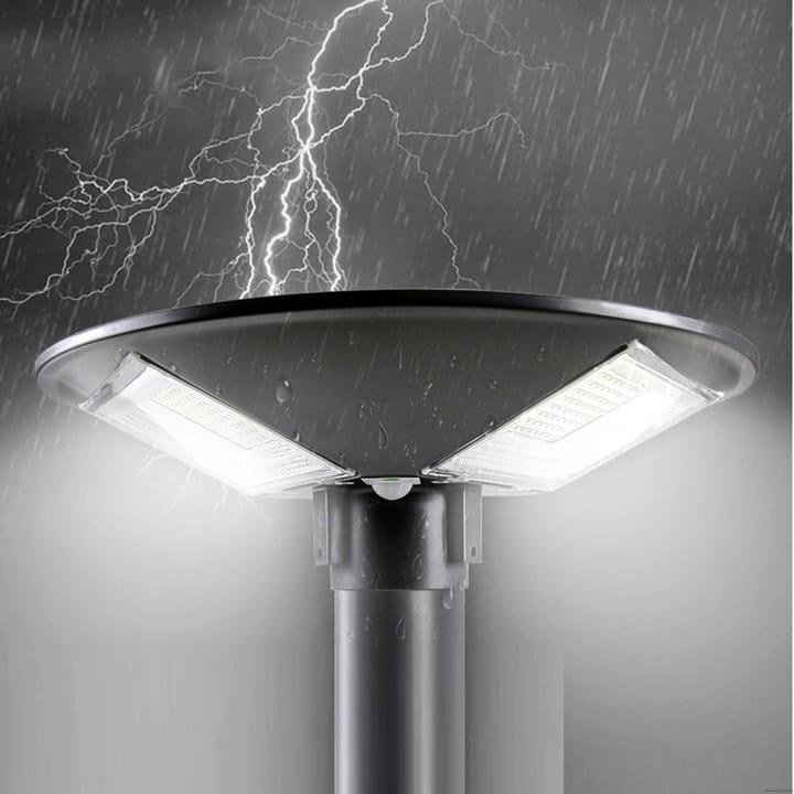 Profesjonalna solarna przemysłowa lampa uliczna jest niezwykle trwała i solidna. Wykonana z tworzywa sztucznego i metalu, oraz dzięki klasie odporności IP 66 wytrzymuje najgorsze warunki atmosferyczne. Do lampy nie potrzeba żadnych kabli ani źródeł światła.