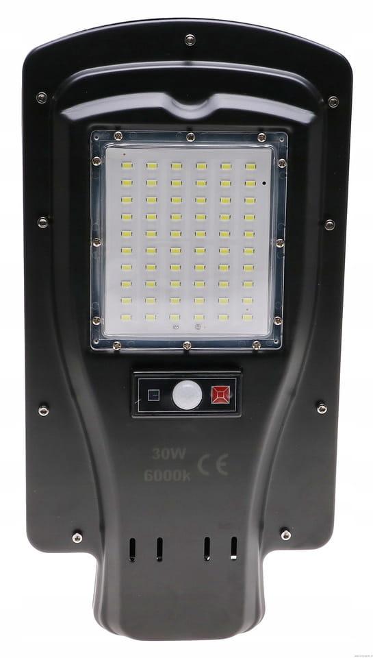 Lampa LED solarna uliczna 30W IP65 czujnik + pilot + uchwyt wysoka jakość