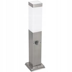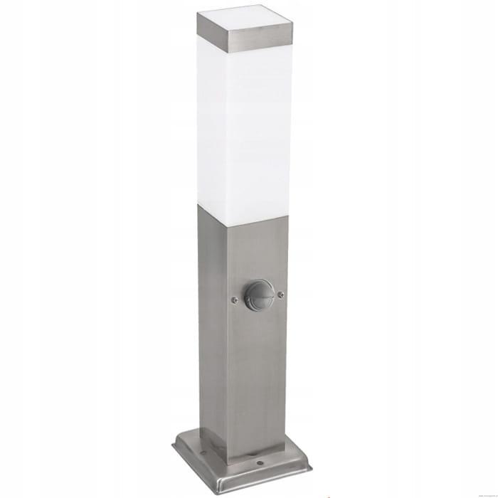 Słupek ogrodowy stojący srebrny, kwadrat 45 cm, HAVANA E-27 IP 44 , 6cm x 6cm z czujnikiem ruchu i zmierzchu