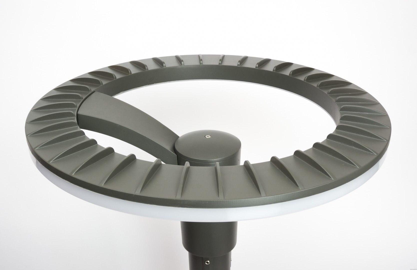 Źródłem światła jest lampa typu UFO i wbudowany moduł LED o mocy 60W, generujący strumień świetlny 4500 lm. Neutralna barwa 4000K zapewnia doskonałą widoczność i komfort oświetleniowy. Oprawa została wyposażona w aluminiową głowicę o średnicy 52 cm, która harmonijnie komponuje się z nowoczesnym designem masztu.