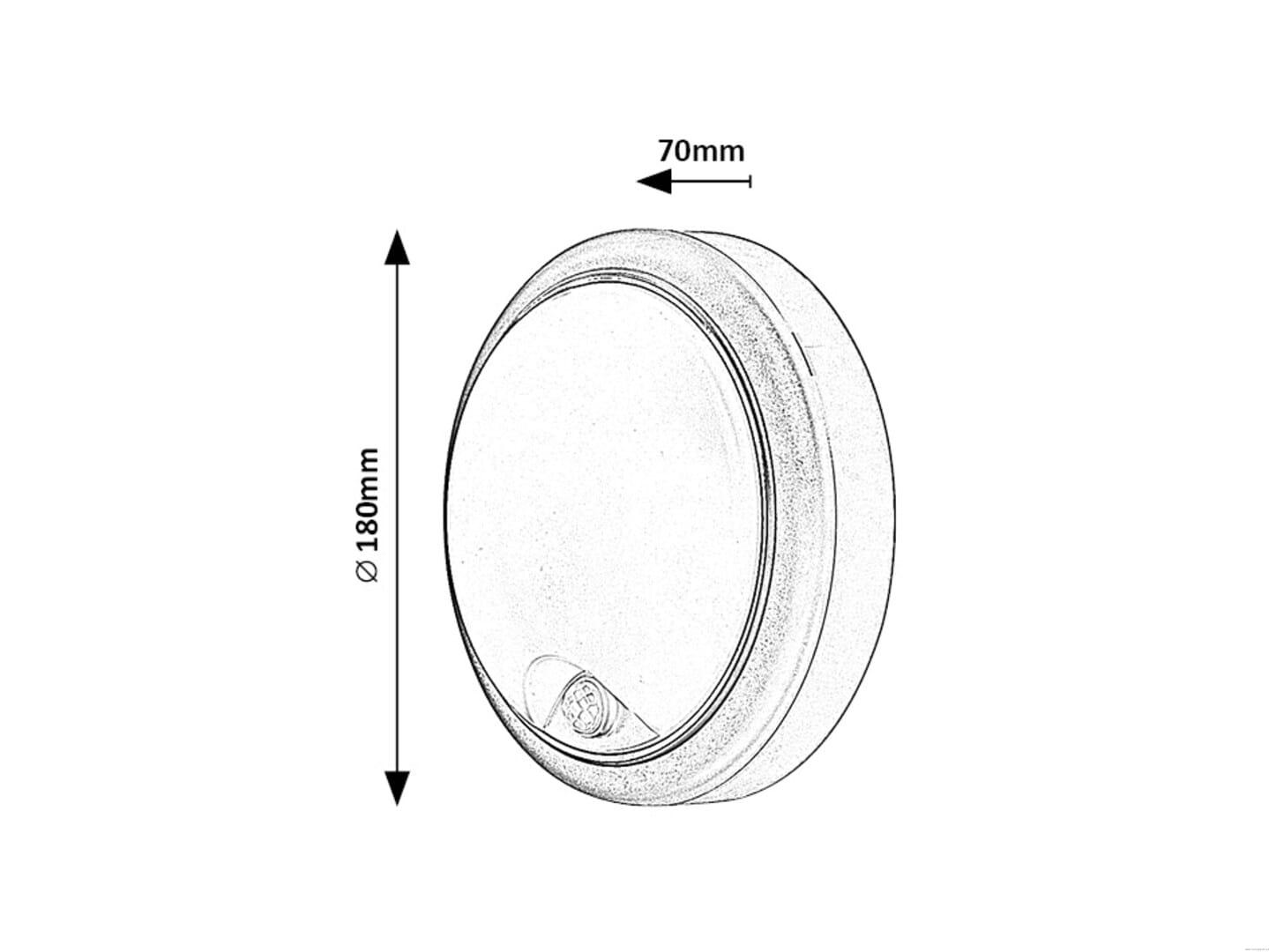Lampa nadaje się do stosowania zarówno wewnątrz jak i na zewnątrz budynków . Średnica lampy to 180 mm. Inteligentny czujnik ruchu, dostosowujący jasność oprawy do warunków zewnętrznych, wykrywa ruch z odległości 6±2 metrów, w zakresie 120°