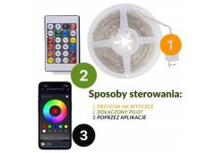 Lampki LED wyposażone są w możliwość sterowania za pomocą pilota lub aplikacji, co daje pełną kontrolę nad oświetleniem w Twoim domu. Możesz swobodnie zmieniać kolory, wybierać różne opcje oświetlenia, tworzyć wzory świetlne, a także ustawiać efekty zmieniające się w rytm muzyki! Wybierz jeden z dynamicznych trybów migania lub stwórz własne animacje – idealne na święta, imprezy, a także codzienną dekorację wnętrza.