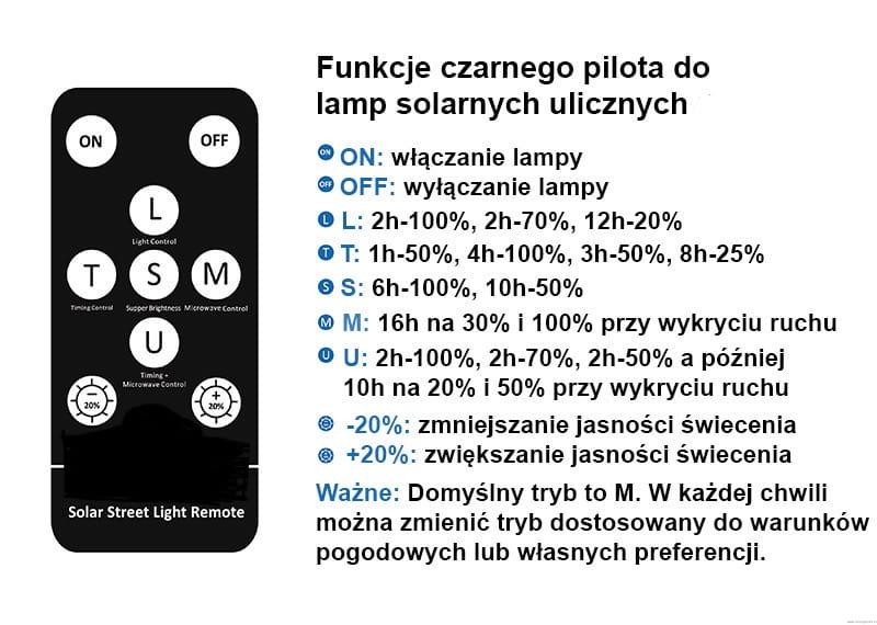 PROFESJONALNA LAMPA ULICZNA SOLARNA MOCNA LED 40W 7200lm + PILOT + SŁUP 4m Czarny IP65