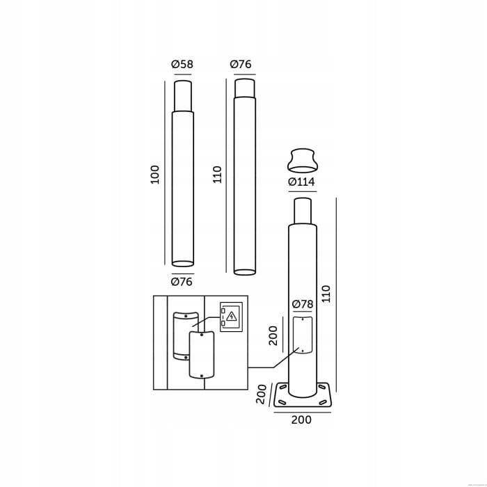 W zestawie: kołki montażowe do betonu, śrubki do łączenia słupa, zaślepka