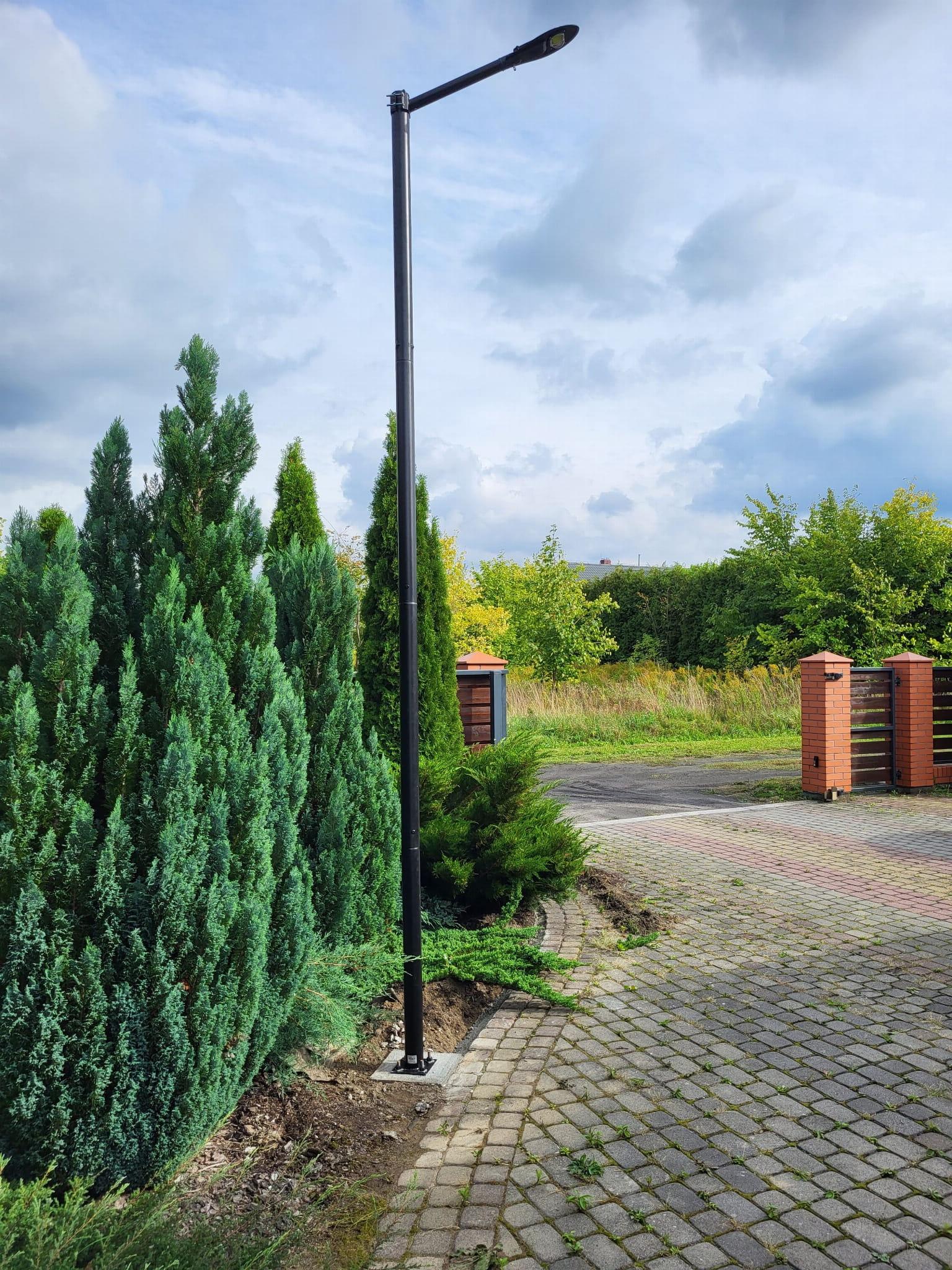 Słup maszt oświetleniowy 300cm średnica 76mm podstawa 20x20cm Czarny