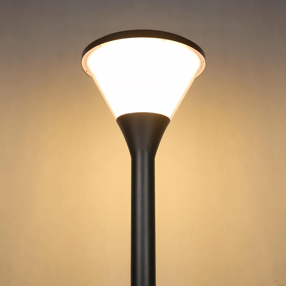 Wyposażona w cylindryczny klosz LED, które oferują jasne i energooszczędne światło o temperaturze barwowej ciepłej 3000 K, idealne do łatwego oświetlania obszarów zewnętrznych.