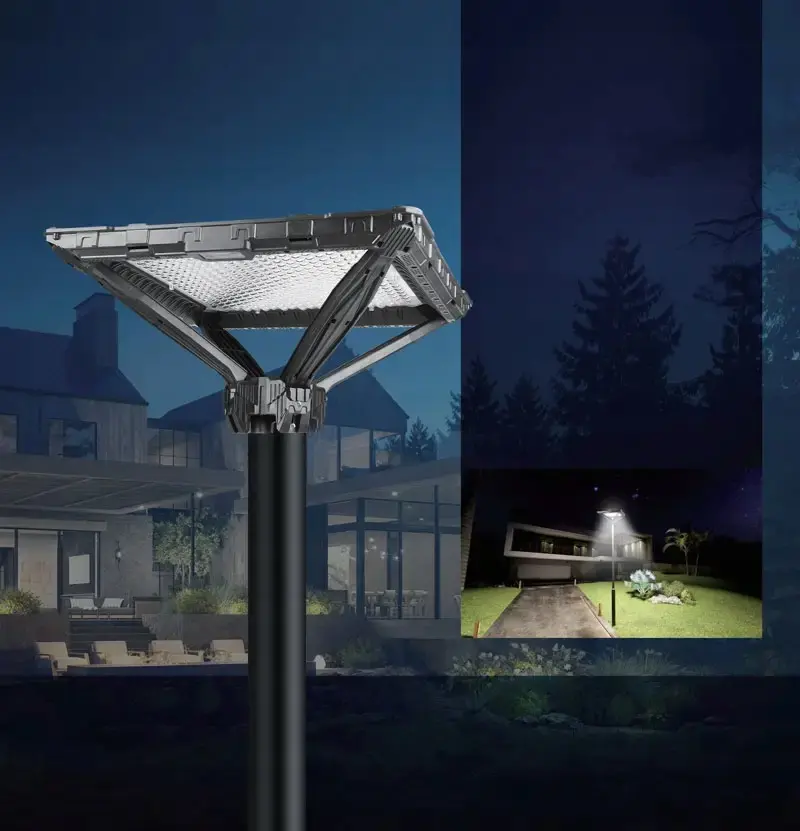 ZESTAW MOCNA LAMPA ULICZNA SOLARNA LATARNIA UFO LED 2000W + Słup Podstawa 20cm x 20cm 3 metry