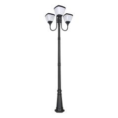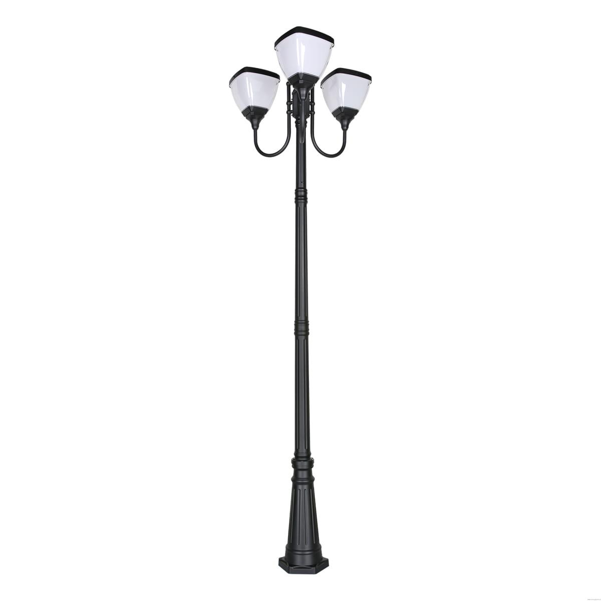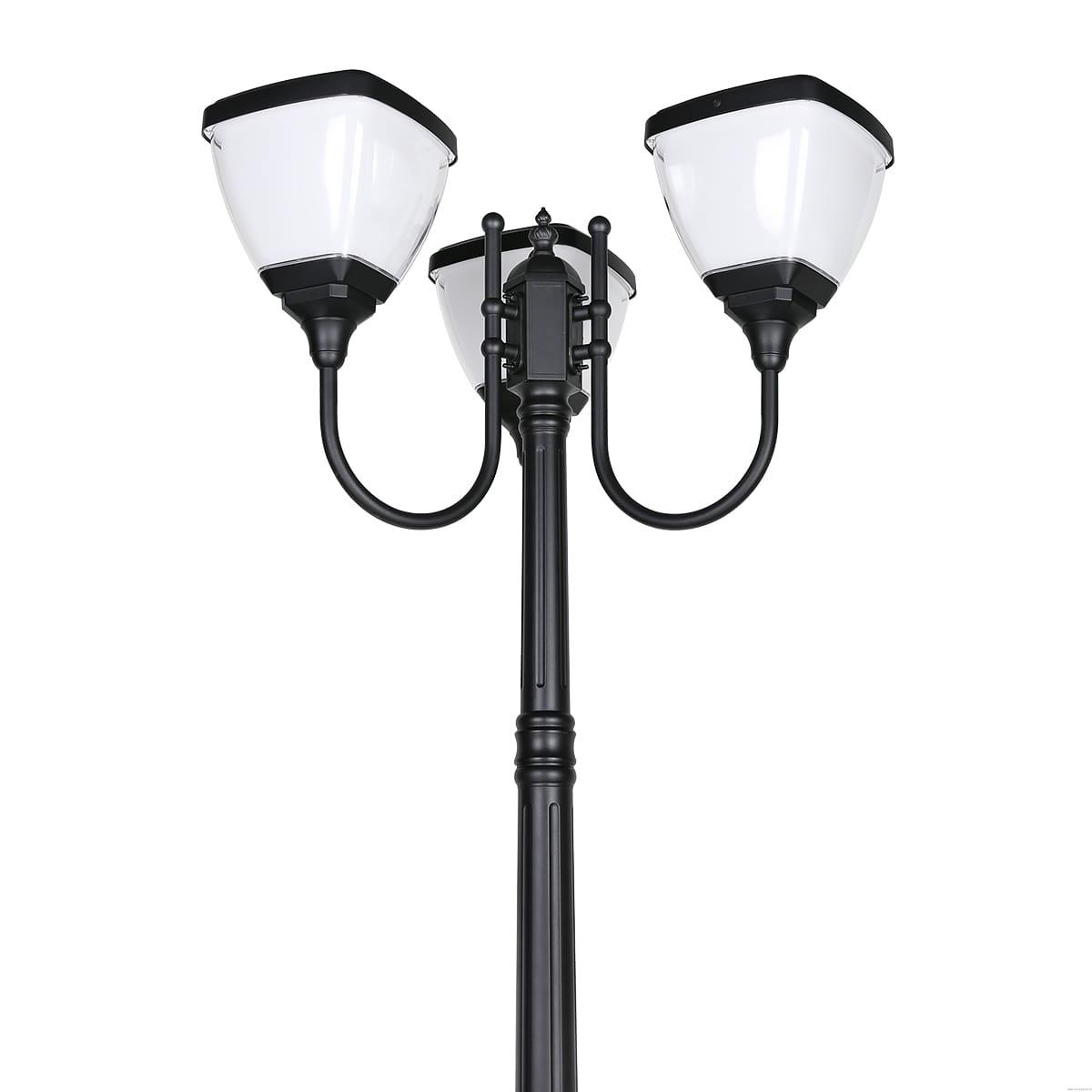 ZESTAW Lampa SOLARNA Latarnia Parkowa RETRO Trójramienna LED 3000K + Słup 260cm Czarna